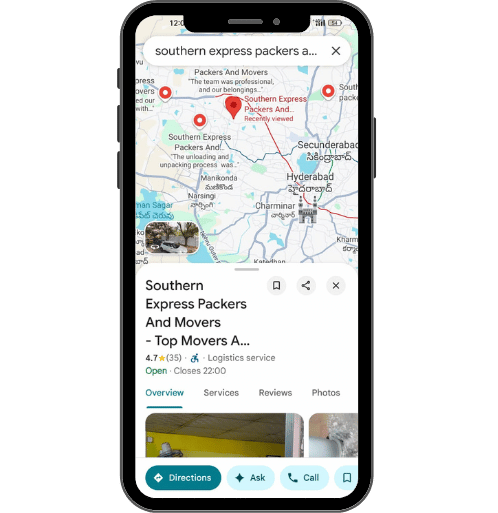 Shop No. 1, Southern Express Packers And Movers – Best Packers And Movers, Top Movers And Packers., near Didiga Bhavan, Kondapur, Sri Ram Nagar, Laxmi Nagar, Hyderabad, Telangana 500084